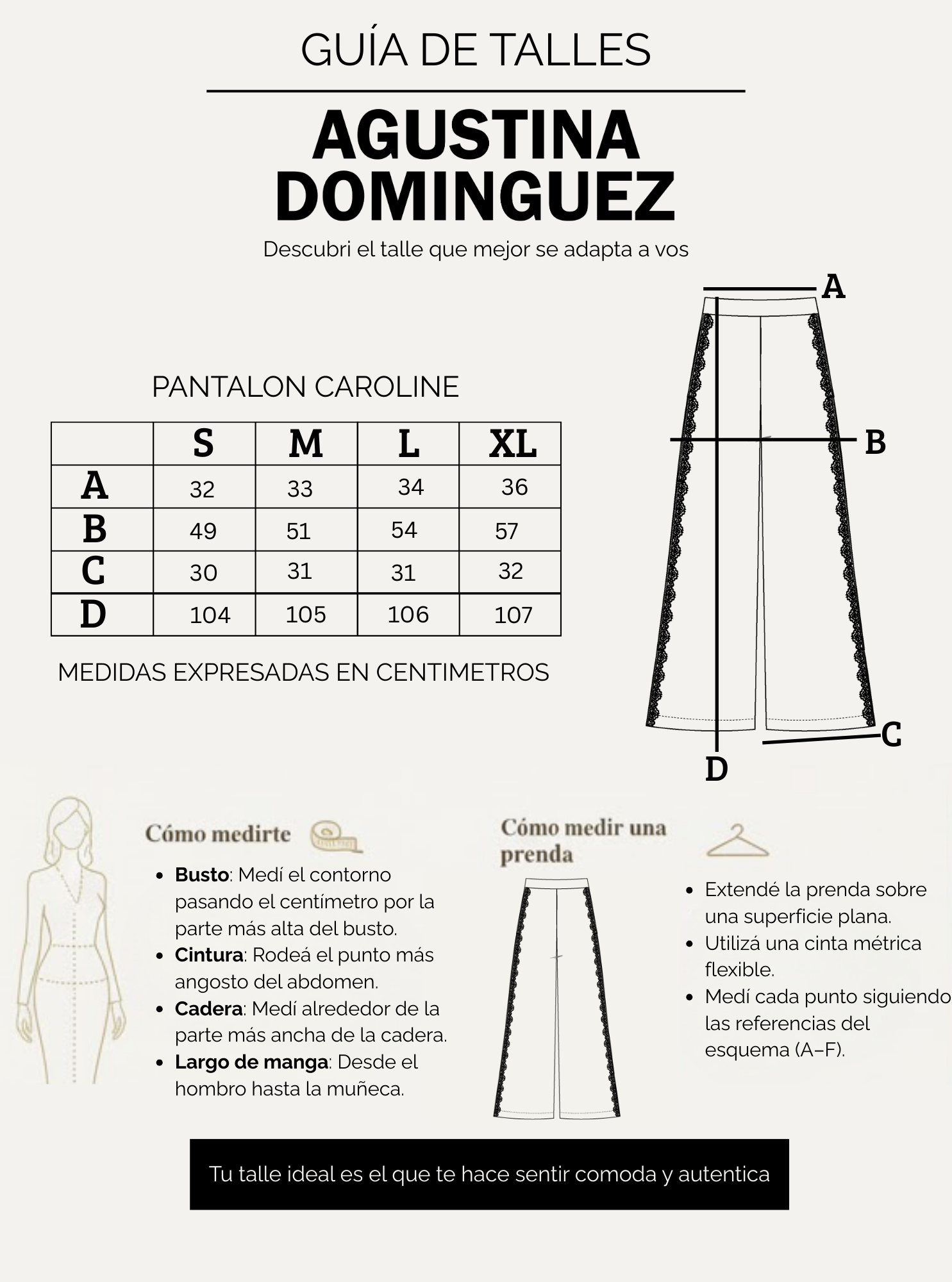 Pantalón de tiro alto en velvet, con cintura limpia tipo faja que sostiene y estiliza sin cortes visibles. Su pierna wide de caída larga acompaña el movimiento con un brillo sutil. Como detalle distintivo, incorpora una guarda de encaje lateral que suma un guiño lingerie elegante y delicado.
