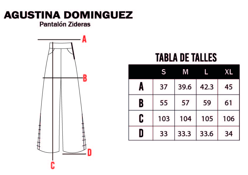 Pantalón con cintura de 6 cm de alto confeccionado en Broderie. Posee tajo en la pierna y botones perla, lo que enaltece a la pieza y la convierte en una de las favoritas de la temporada. Un pantalón perfecto para combinar con la Camisa Zideras formando un total look, o con otras piezas superiores.