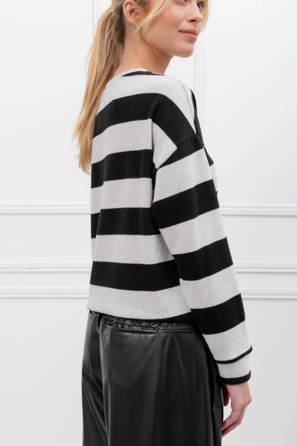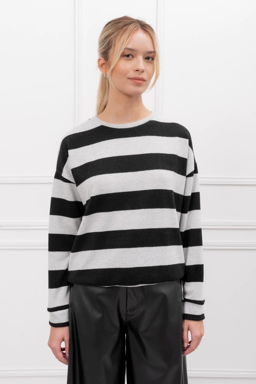 Sweater fino rayado cuello redondo. Dejate llevar por el glamour parisino.